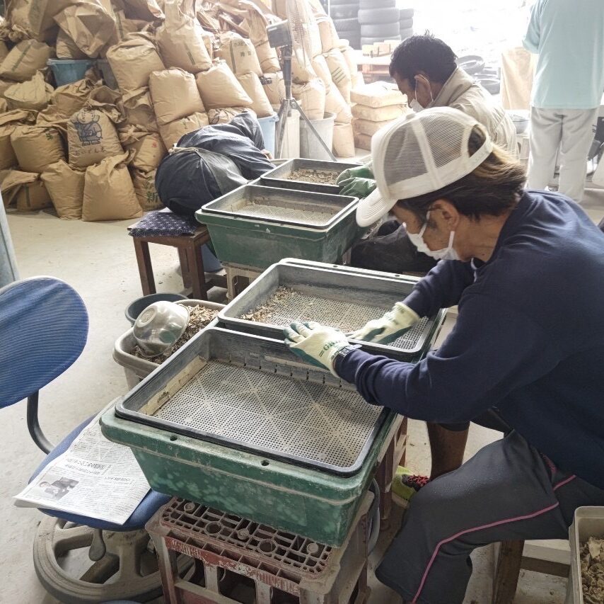 牡蠣のからを粉砕して石灰に加工し、農家さんへ無料提供しております。
